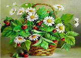 Алмазная вышивка «Корзина с цветами и земляникой» 40x50 см